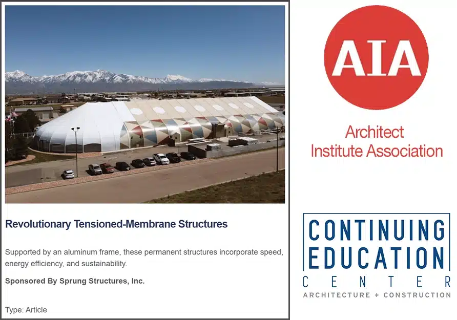 In the face of modern-day building challenges that include tight construction schedules, limited budgets and increasingly strict mandates around sustainable design, architects all over the world are embracing the Sprung structure as a creative and permanent solution for meeting their clients’ needs. At Sprung, we help architects create innovative, memorable environments that truly stand out. So much so, we have developed a course where architects can earn AIA continuing education credits.