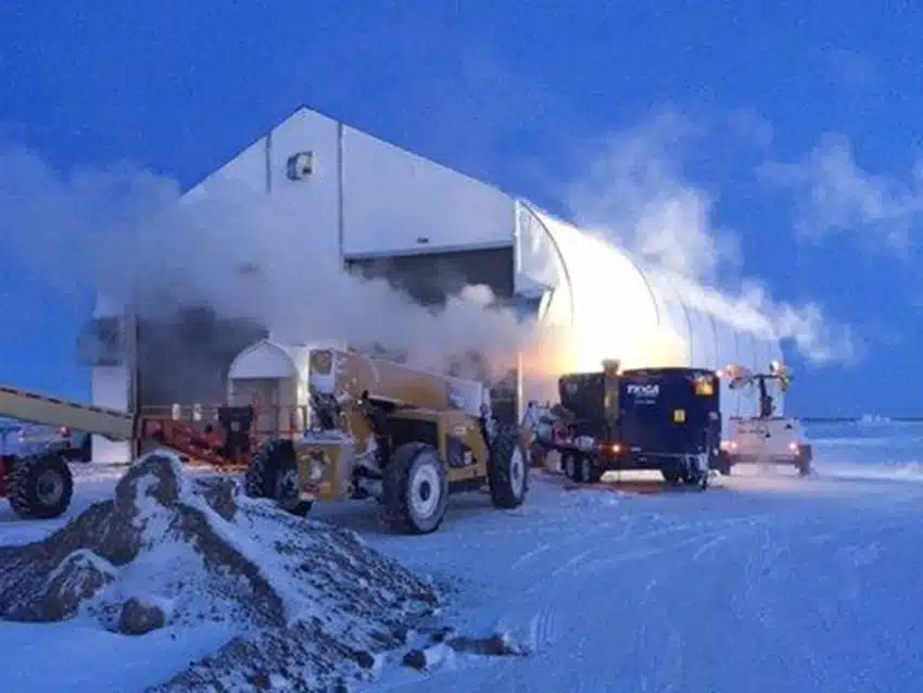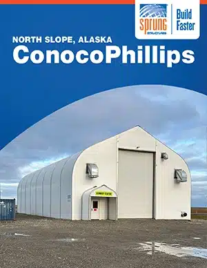 Among ConocoPhillips’ many sites of operation is the North Slope of Alaska, where temperatures regularly hit below -40 degrees Fahrenheit throughout the winter months. When leaders at the company identified the need for a new North Slope facility where workers could thaw out heavy equipment prior to moving it to the maintenance shop, they turned to Sprung for a fast, sensible and cost-effective solution. The company wanted something much more durable and flexible than the galvanized steel tents that workers had used as thawing stations in the past.