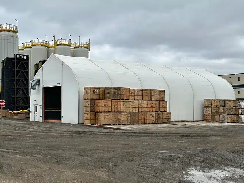 Sprung delivered fully insulated structures engineered to meet the challenging conditions of Alaska’s North Slope. Featuring a bright, clear-span interior, custom service doors and a protective Arctic entry vestibule, the structure serves as an effective space for warming heavy equipment amid frigid outdoor temperatures. Even during construction, before the main doors were installed, the general contractor was able to keep the structure well above freezing with only one exterior diesel heater and tarps hung over the door openings—thanks to Sprung’s superior insulation system.