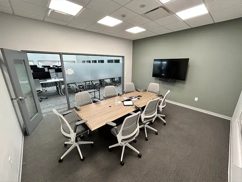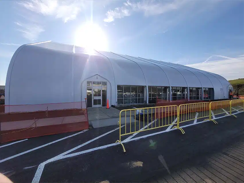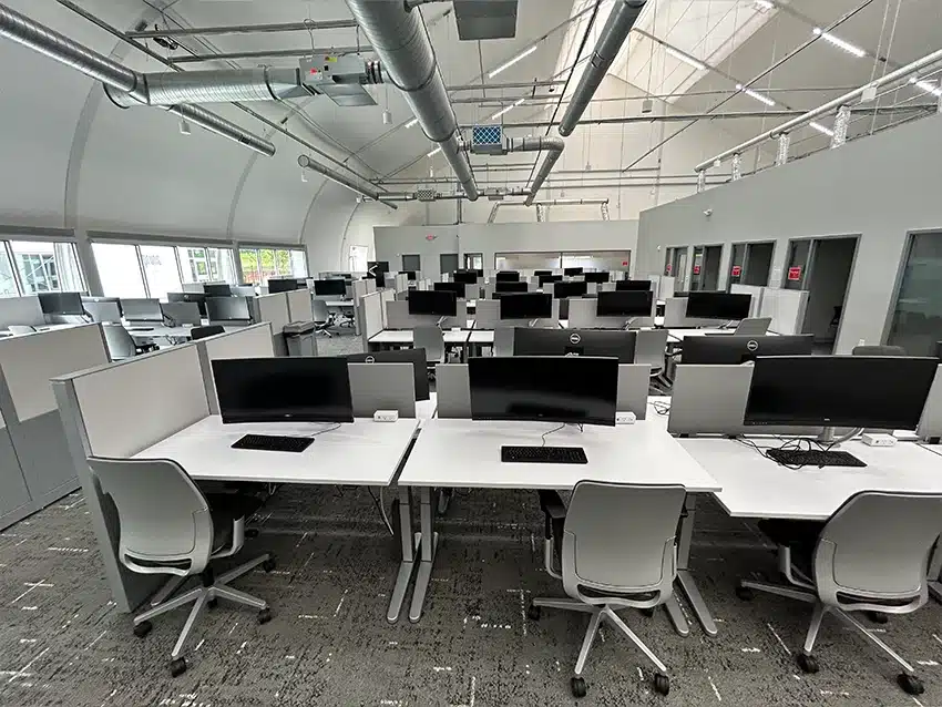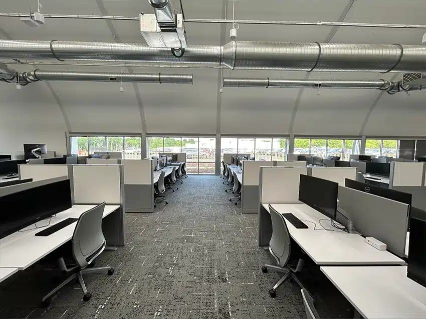 Sprung provided two 100’ x 135’ structures, each one featuring 125 workstations, four conference rooms, four enclaves (retreat rooms), nine focus booths, one resource area and two restrooms, as well as a cafe and break rooms. Structures were occupied approximately six months after delivery.