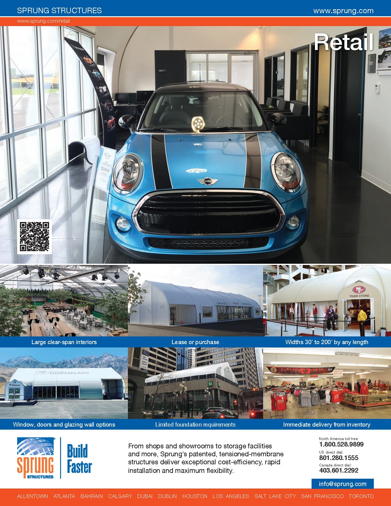 With Sprung, you can customize and assemble a new retail store building or retail enclosure faster than what’s possible through conventional construction. Featuring convenient insulation packages, opportunities for theming and interior decorating, and the ability to include display windows, Sprung structures offer superior aesthetics and great leasing options for both permanent and temporary retail store building applications. Quick construction timelines, limited foundation requirements and the capability to withstand extreme weather and other challenging conditions mean that our prefab commercial retail buildings and retail enclosures are suitable for any location around the world.